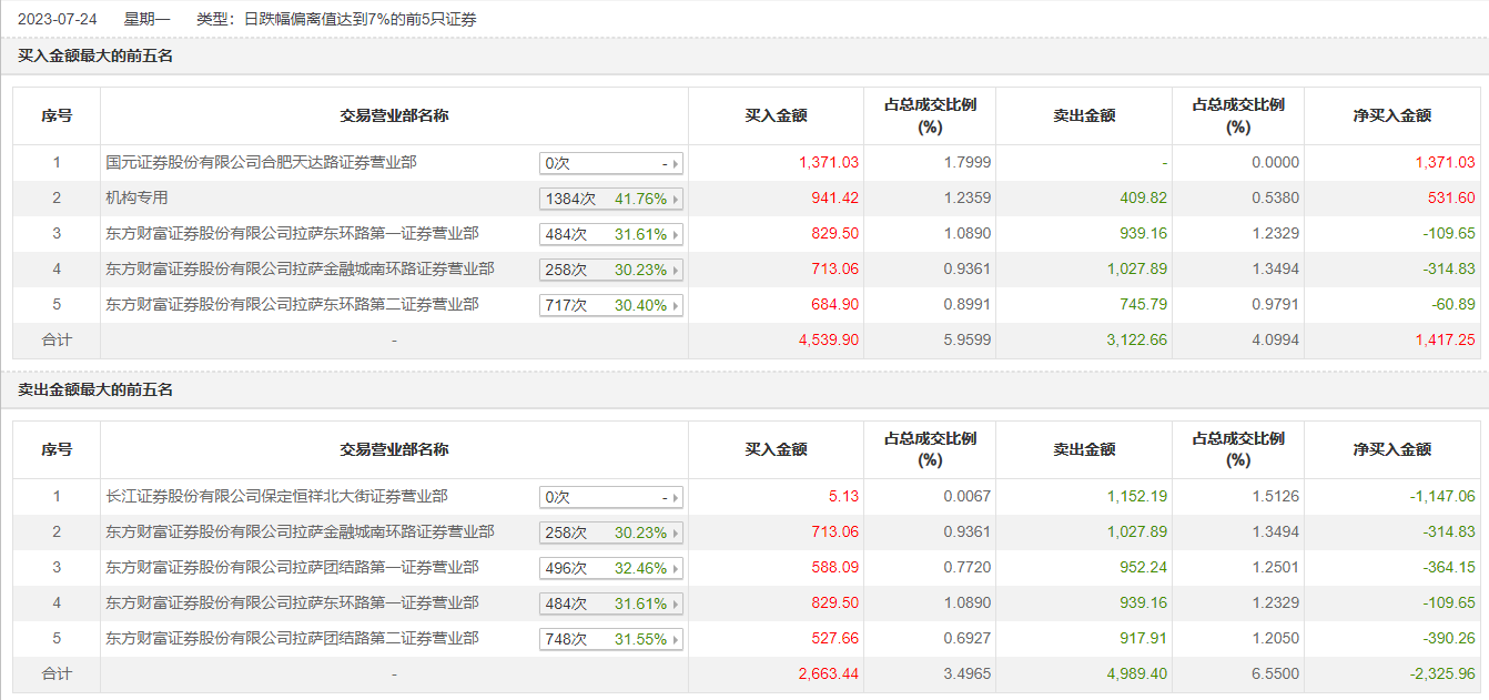 具体来看,机构买入941.42万元,卖出409.82万元,合计净买入531.6万元。此外,长江证券保定恒祥北大街证券营业部、东方财富证券拉萨金融城南环路证券营业部分别卖出1152.19万元、1027.89万元;国元证券合肥天达路证券营业部、东方财富证券拉萨东环路第一证券营业部分别买入1371.03万元、829.50万元。