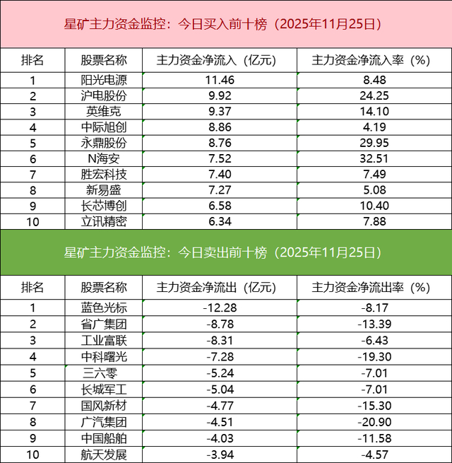 从个股主力资金监控数据来看,主力资金净流入前十的个股所属板块较为分散,阳光电源净流入居首。