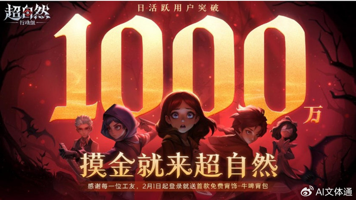 2月2日,巨人网络正式宣布旗下游戏《超自然行动组》日活跃用户(DAU)突破1000万大关。这一数字使巨人网络成为当前A股市场中唯一拥有单款千万级日活产品的游戏公司。