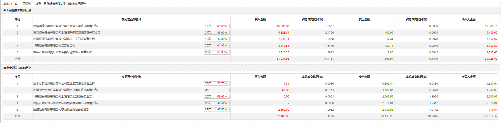 具体来看,知名游资现身龙虎榜,宁波桑田路(国盛证券有限责任公司宁波桑田路证券营业部)净买入170.07万元。此外,中信建投证券上海浦东南路证券营业部、东方证券上海浦东新区源深路证券营业部分别买入1.58亿元、5328.84万元;国泰君安证券三亚迎宾路证券营业部、中国中金财富证券有限公司扬州文昌东路证券营业部分别卖出1.09亿元、4427.85万元。