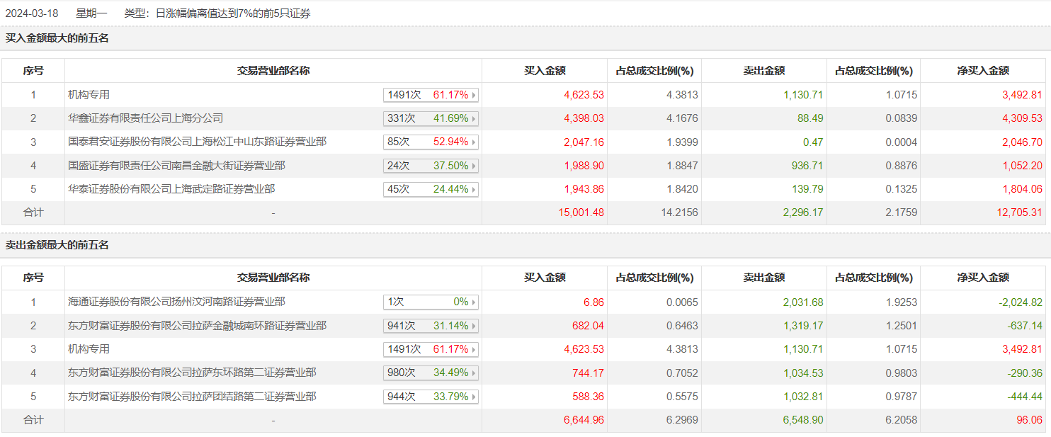 3月18日涨9.98%,成交额10.55亿元,换手率18.43%,盘后龙虎榜数据显示,一机构净买入3492.81万元。