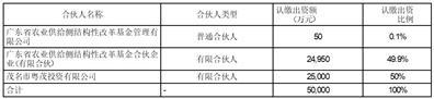 1、唐人神集团股份有限公司(以下简称“公司”)全资子公司广东唐人神产业发展有限公司(以下简称“广东唐人神”)拟以自有资金10,000万元与茂名市粤茂投资有限公司(以下简称“粤茂投资”)、广东省粤茂农业发展基金合伙企业(有限合伙)(以下简称“粤茂基金”)共同投资设立广东省粤茂壹号农业投资合伙企业(有限合伙)(以下简称“合伙企业”、“粤茂壹号”),粤茂壹号由以上合伙人总认缴出资20,001万元。