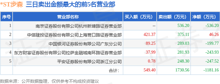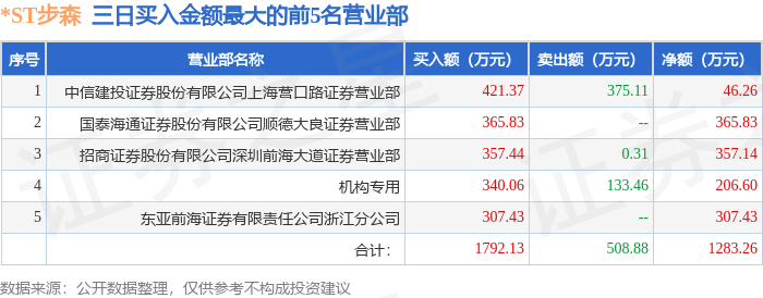 1月13日*ST步森(002569)龙虎榜数据:机构净买入206.6万元(3日)