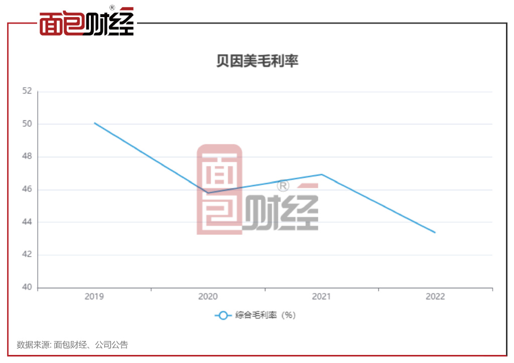 在贝因美业绩出现大多亏损的同时,公司的毛利率呈现下滑态势。数据显示,2022年,公司的综合毛利率为43.47%,较上年同期下降3.55个百分点。