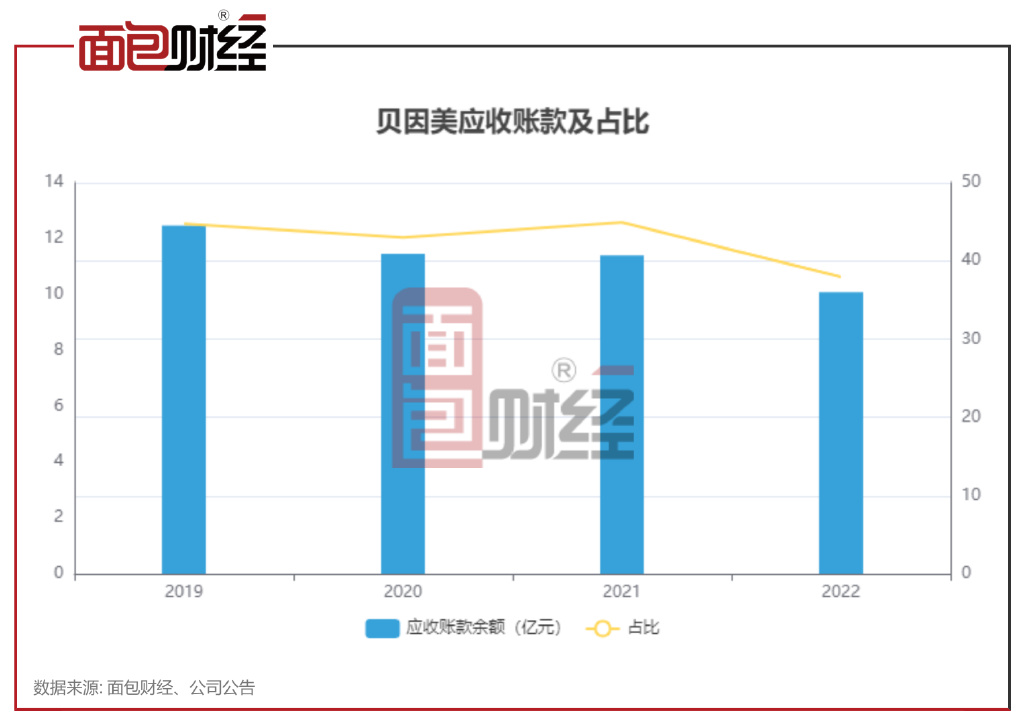 近年来,贝因美的应收账款余额较高且占总营收比例均超过30%。数据显示,截至2022年12月31日,贝因美应收账款余额为10.07亿元,占比营收37.93%,两项指标虽较上年末有所下降但仍处于较高水平。