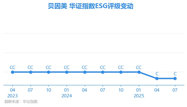 日前,华证指数公布了新一期(2025年7月31日)的ESG评级结果,贝因美(002570.SZ)获得C评级(华证指数评级为C起至AAA九档,C为最低档,AAA为其最高一级评级/AA为其第二档),上一期(2025年4月30日)ESG评级为C。本期ESG评级在156家食品行业A股上市公司中排名第140(上一期排名第154)。