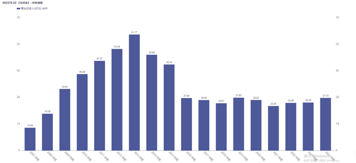 贝因美营业总收入历年表现。图源:同花顺iFinD