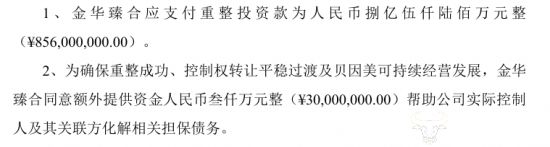 公告显示,3月17日,公司控股股东浙江小贝大美控股有限公司已与金华臻合企业管理合伙企业(有限合伙)签署了《重整投资协议》,并向金华中院提交重整申请。根据协议,金华臻合将支付重整投资款8.56亿元,以及额外提供3000万资金帮助化解相关债务。