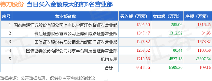 从龙虎榜公布的当日买卖数据来看,机构合计净卖出6364.41万元。章盟主等知名游资榜上有名。(知名游资章盟主一般指国泰海通证券股份有限公司上海长宁区江苏路证券营业部席位,根据市场资料整理,仅供参考)