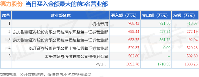 10月20日德力股份(002571)龙虎榜数据:游资章盟主上榜