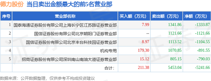 证券之星消息,沪深交易所2025年10月20日公布的交易公开信息显示,德力股份(002571)因日跌幅偏离值达到7%的前5只证券登上龙虎榜。此次是近5个交易日内第2次上榜。