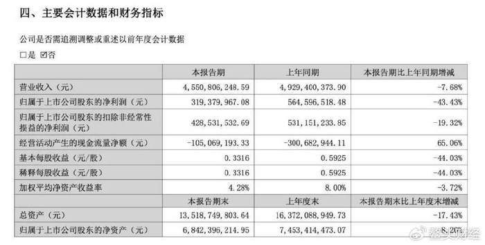 2025年第二季度,公司实现营业收入25.13亿元,同比下降10.84%,实现归母净利润3.07亿元,同比下降23.01%。