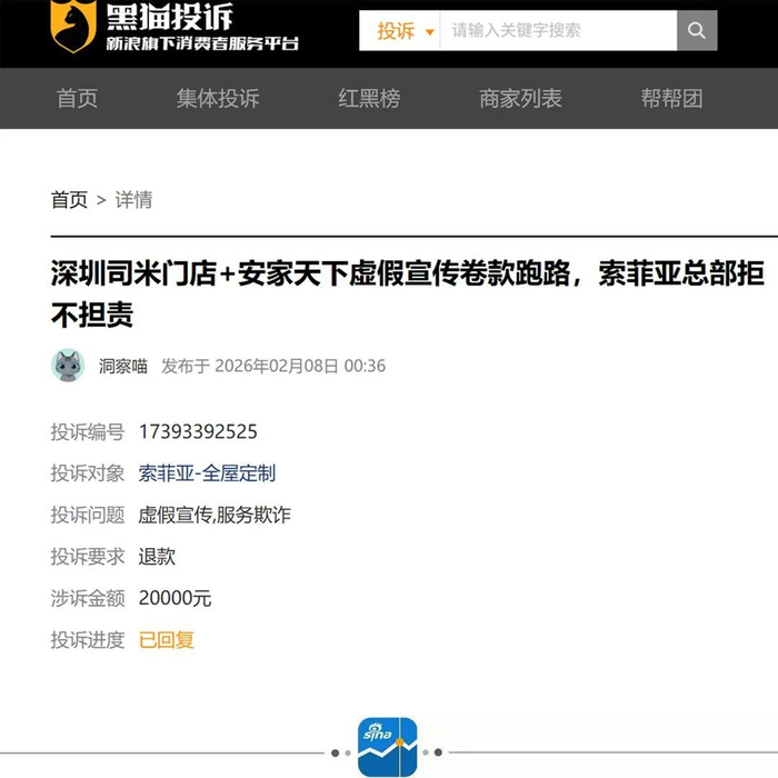 针对该经销商跑路事件的处理进展,《BUG》栏目尝试通过邮件等多种方式联系索菲亚官方,截至发稿未获回应。2月2日,索菲亚则在投资者互动平台回复提问时表示,公司高度重视,目前正针对司米产品相关订单信息开展全面核实工作,始终秉持“以用户为中心”的核心理念,将积极妥善处理相关客户问题,切实维护消费者合法权益。