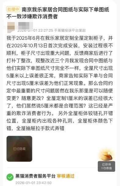 定制家居尤其是整装定制,是服务消费里高需求、高客单价、强决策依赖、重结果预期的核心刚需型服务品类。由于定制效果难提前量化、售后条款复杂、宣传的设计与材质标准与实际交付落差大、合同暗藏隐形消费陷阱、监管取证与追责成本高,消费者与定制机构之间的权责天平往往并不合理。