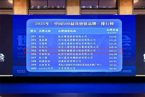 第22届世界品牌大会于6月18日在北京举行。主办方世界品牌实验室(World Brand Lab)发布了2025年《中国500最具价值品牌》排行榜。在这份基于财务数据、品牌强度和消费者行为分析的年度报告中,好想你凭借卓越的品牌影响力与深厚的市场积淀,以207.72亿元的品牌价值连续7年荣耀登榜,品牌价值较2024年提升30.47亿元,再度成为行业焦点。