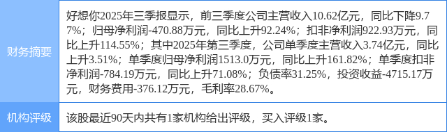 2025年11月3日,华鑫证券研究员孙山山,张倩发布了对好想你的研报《公司事件点评报告:省外商超进展顺利,盈利端持续改善》,该研报对好想你给出“买入”评级。研报中预计2025-2027年EPS分别为0.01/0.17/0.27(前值为0.02/0.17/0.27)元,当前股价对应PE分别为843/57/37倍,维持“买入”投资评级。证券之星数据中心根据近三年发布的研报数据计算,该研报作者对此股的盈利预测准确度为16.57%。