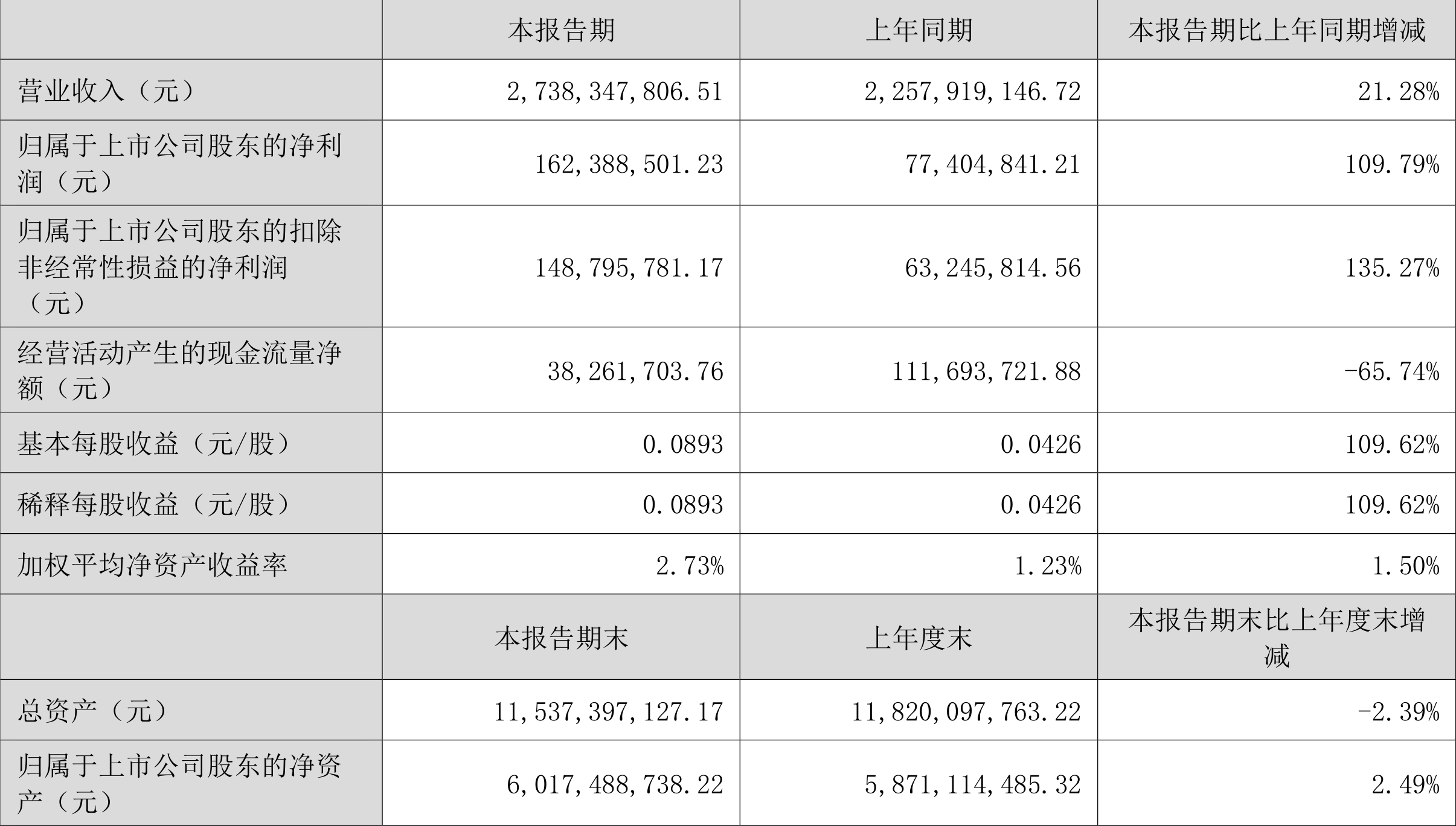 数据显示,2024年上半年公司加权平均净资产收益率为2.73%,较上年同期增长1.50个百分点;公司2024年上半年投入资本回报率为1.93%,较上年同期增长0.91个百分点。