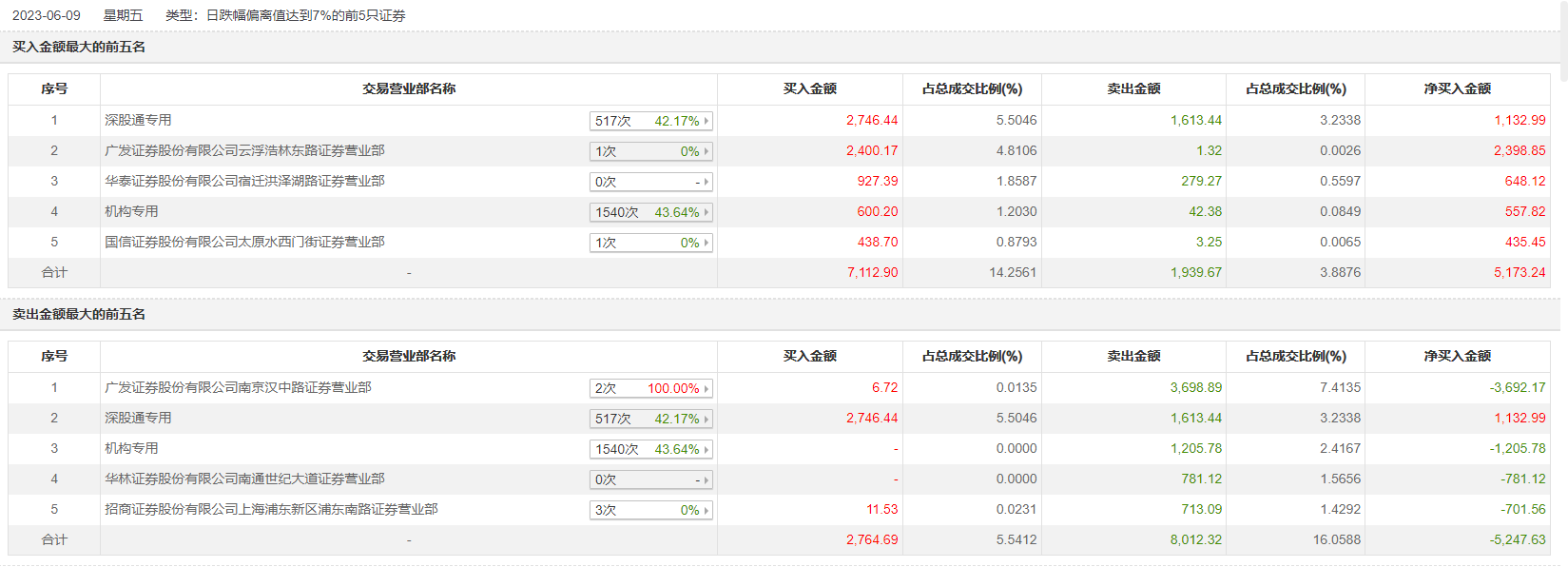 具体来看,机构买入600.2万元,卖出1248.16万元,合计净卖出647.96万元。此外,广发证券南京汉中路证券营业部、深股通专用分别卖出3698.89万元、1613.44万元;深股通专用、广发证券云浮浩林东路证券营业部分别买入2746.44万元、2400.17万元。