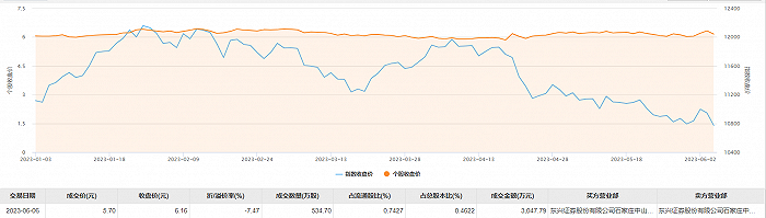 6月6日大宗交易成交534.7万股,成交额3047.79万元,占当日总成交额的33.68%,成交价5.7元,较市场收盘价6.16元折价7.47%。
