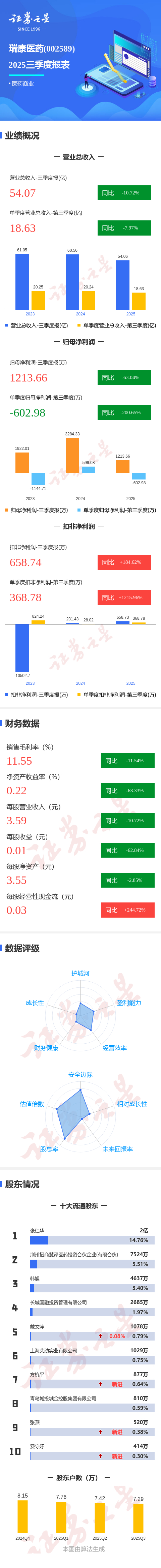 图解瑞康医药三季报:第三季度单季净利润同比下降200.65%
