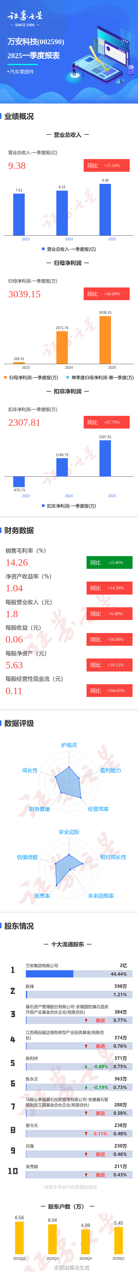 图解万安科技一季报:第一季度单季净利润同比增46.69%