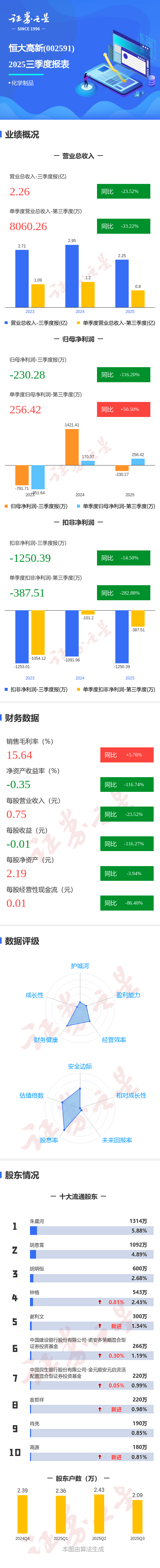 图解恒大高新三季报:第三季度单季净利润同比增长50.50%