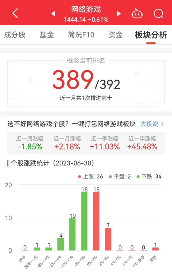 数据显示,截至今日,网络游戏板块近一周涨幅-1.85%,近一月涨幅2.18%,近一季涨幅11.03%。