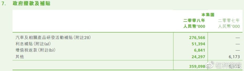 还有一些,财报未详细解释,比如其他,金额不小,杠杆游戏没有直接写这些补贴,部分可能与汽车行业补贴也有关。如上图。