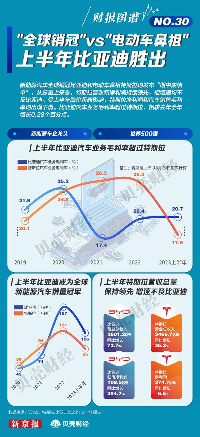 财报图谱[gf]325a[/gf]|“全球销冠”VS“电动车鼻祖” 上半年比亚迪胜出