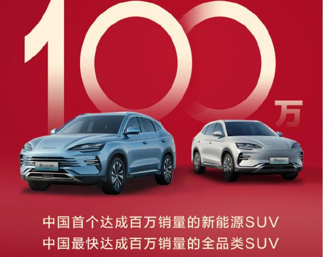 汽车官宣,旗下宋PLUS新能源累计销量超过100万辆,成为了“中国首个达成百万销量的新能源SUV”,同时还成为了“中国最快达成百万销量的全品类SUV”。
