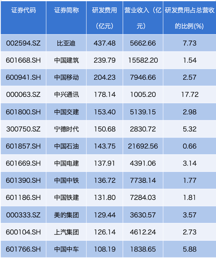在整体研发投入增长的背景下,各行业龙头企业表现尤为突出。