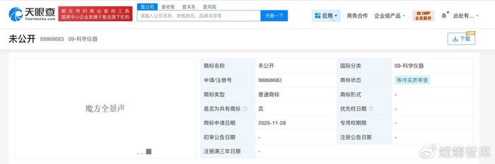 天眼查知识产权信息显示,近日,比亚迪股份有限公司申请注册一枚“魔方全景声”商标,国际分类为科学仪器,当前商标状态为等待实质审查。