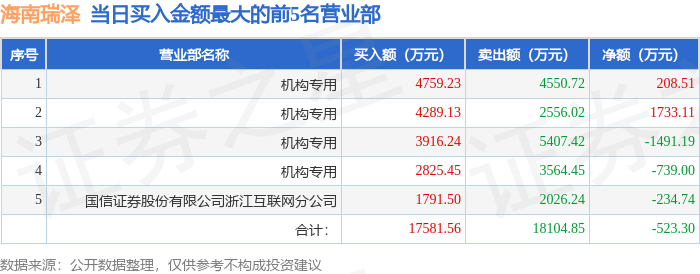 从龙虎榜公布的当日买卖数据来看,机构合计净卖出288.56万元。北京中关村等知名游资榜上有名。(知名游资北京中关村一般指中国银河证券股份有限公司北京中关村大街证券营业部席位,根据市场资料整理,仅供参考)