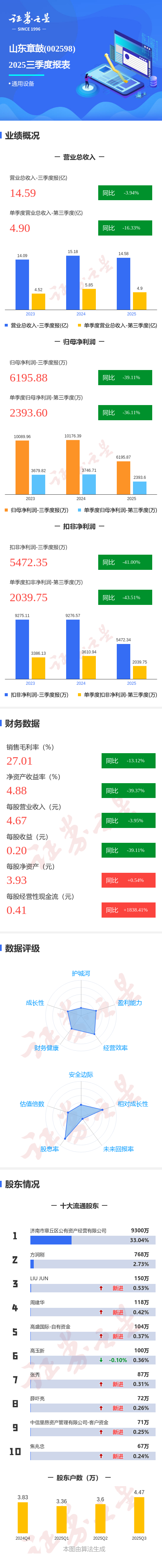 图解山东章鼓三季报:第三季度单季净利润同比下降36.11%
