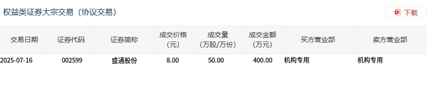 盛通股份今日大宗交易折价成交50万股,成交额400万元