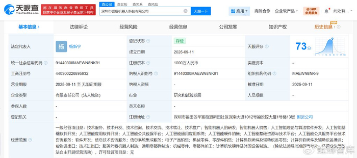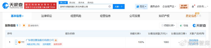 #领益智造在深圳成立机器人科技公司# 注册资本1000万