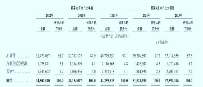 目前,领益智造业务划分为AI硬件(含AI终端设备、机器人、企业级商用服务器)、汽车及低空经济、其他业务(以清洁能源为主)等三大板块,其中AI硬件是核心收入来源,2025年前三季度贡献87.6%营收。