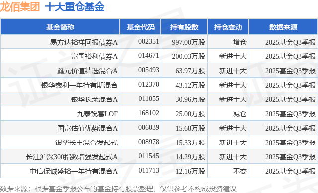 根据2025基金Q3季报公募基金重仓股数据,重仓该股的公募基金共16家,其中持有数量最多的公募基金为易方达基金的易方达裕祥回报债券A。易方达裕祥回报债券A目前规模为299.27亿元,最新净值1.61(1月5日),较上一交易日上涨0.25%,近一年上涨6.73%。该公募基金现任基金经理为王晓晨 王丹。王晓晨在任的基金产品包括:易方达增强回报债券A,管理时间为2011年8月15日至今,期间收益率为183.56%;易方达投资级信用债债券A,管理时间为2013年9月10日至今,期间收益率为76.96%;易方达安泽180天持有期债券A,管理时间为2024年1月24日至今,期间收益率为5.29%。王丹在任的基金产品包括:易方达高等级信用债债券A,管理时间为2024年6月29日至今,期间收益率为3.91%;易方达安嘉30天持有债券A,管理时间为2024年12月11日至今,期间收益率为2.13%;易方达恒兴3个月定开债,管理时间为2025年7月17日至今,期间收益率为0.4%。