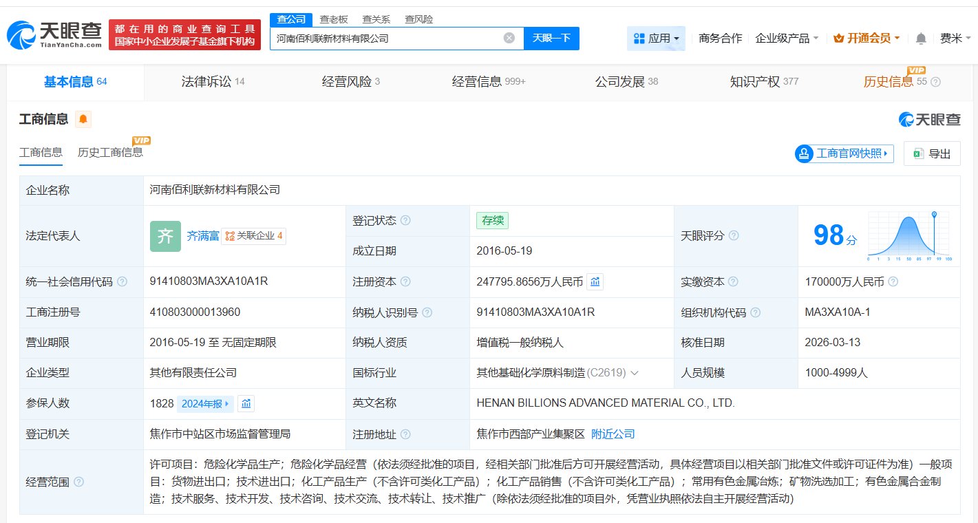 龙佰集团旗下佰利联新材料公司增资至24.8亿元
