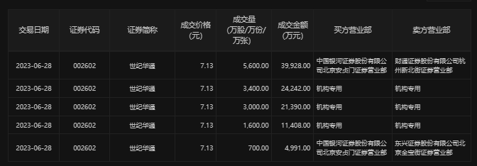 世纪华通出现10.2亿元平价大宗交易,成交价格每股7.13元