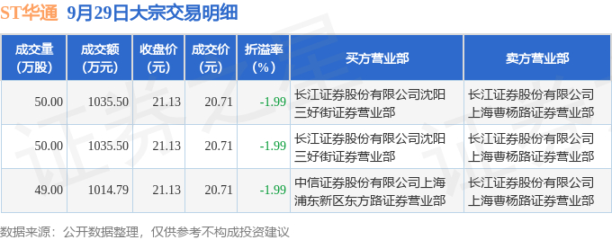 证券之星消息,9月29日ST华通发生大宗交易,交易数据如下: