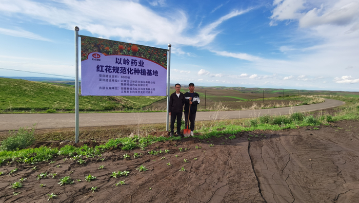 以岭药业在当地以共建模式开展红花规范化种植基地建设,当地百姓负责红花的种植、管理、采摘和加工,公司常年派驻技术员对当地百姓进行技术培训、监管及指导。该基地依据中药材GAP(“中药材生产质量管理规范”)相关要求,根据红花生产特点,明确了影响红花质量的关键环节,按照“六统一”“可追溯”具体要求建立了完善的质量管理体系和质量标准,并拥有先进的全过程追溯管理体系。该基地的建设不仅保障了中药材质量稳定、安全有效,更助力了当地农民增收、乡村振兴,实现了经济效益与生态效益的双赢。