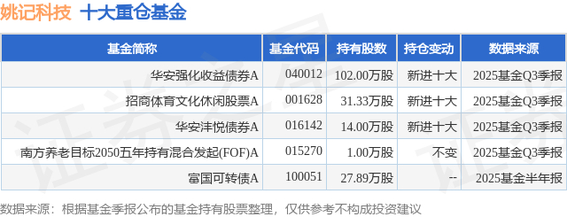 重仓姚记科技的公募基金请见下表:
