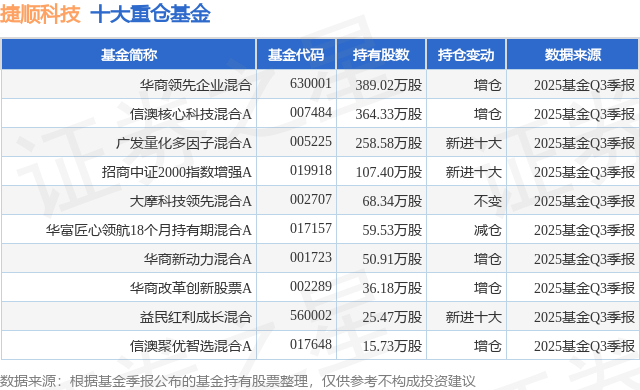 重仓捷顺科技的前十大公募基金请见下表: