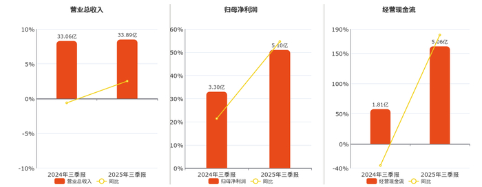 公司营业总收入为33.89亿元。归母净利润为5.10亿元。经营活动现金净流入为5.06亿元。