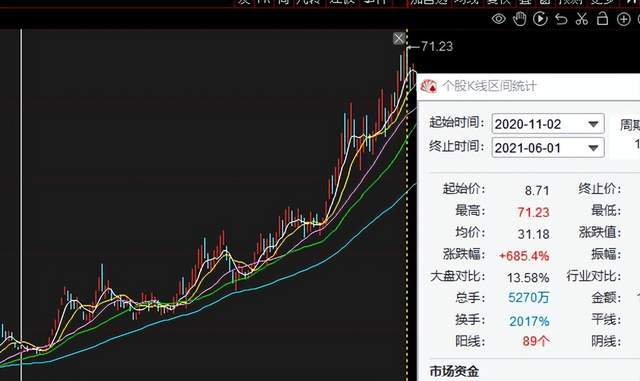 因为涉及医美概念,朗姿股份曾出现过股价狂飙现象。2020年底,医美概念在A股市场上大火,整个板块走出牛市。朗姿股份的股价开始狂飙,2020年11月至2021年6月,朗姿股份从8元涨超71元,涨幅接近700%。