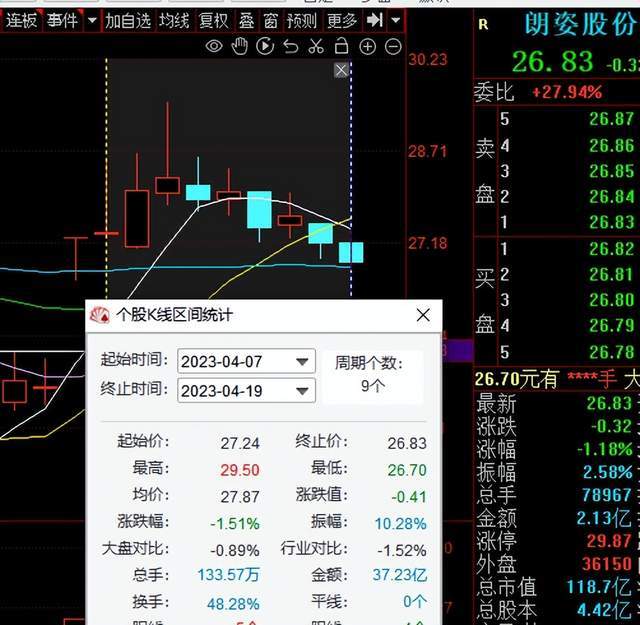 4月19日收盘,朗姿股份报价26.83元,相比此前涨停后的27.24元略有回调。