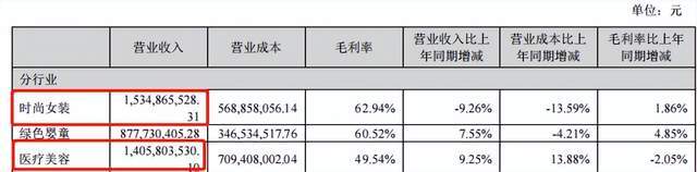 资料显示,朗姿股份是一家主营时尚女装、绿色婴童和医疗美容三大业务的企业。2022年报显示,时尚女装、绿色婴童、医疗美容业务营收占总营收的比例大约分别为40%、24%、36%。