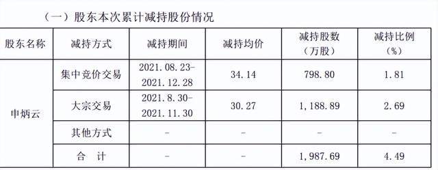 2021年6月5日,当时正是朗姿股份的股价高位。朗姿股份公告,实际控制人的一致行动人申炳云拟清仓减持。当时,申炳云持有朗姿股份1987.69万股,持股比例4.49%。按当时股价,申炳云持股市值高达12亿元。
