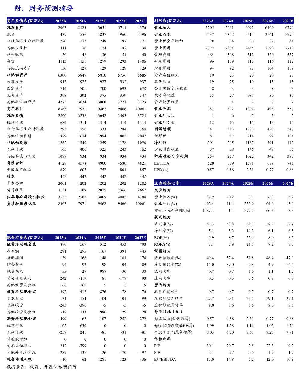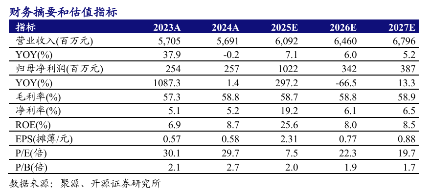 公司发布三季报:2025Q1-Q3实现营收43.3亿元(同比+0.9%,下同)、归母净利润9.9亿元(+367.0%)、扣非归母净利润1.7亿元(-4.1%);其中2025Q3实现营收14.6亿元(+12.7%)、归母净利润7.1亿元(+1579.5%)、扣非归母净利润0.4亿元(-9.1%),主要系处置长期资产形成的损益影响归母净利润,考虑到该变动,我们上调2025年盈利,预计公司2025-2027年归母净利润为10.22/3.42/3.87亿元(原值为4.04/3.20/3.64亿元),对应EPS为2.31/0.77/0.88元,当前股价对应PE为7.5/22.3/19.7倍,维持“买入”评级。